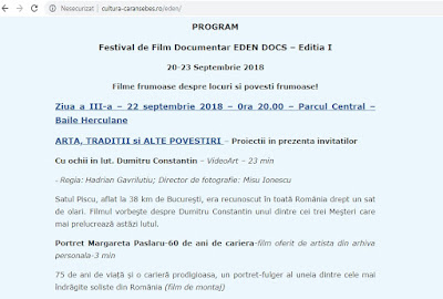 22 sept. – “Portret Margareta Paslaru - 60 de ani de cariera” - film de montaj inclus in programul Festivalului de Film Documentar EDEN DOCS, editia 1